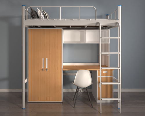 圖三中所示為了一個(gè)全鋼制的鐵床,不僅床架是鐵制,就連柜子和桌子都是鐵制的,一般,學(xué)生宿舍都會(huì)常用這類床,它的性能主要就是結(jié)實(shí)!