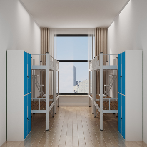 產(chǎn)品介紹:員工宿舍公寓床定制技術(shù)要求 一、鐵床部份的材質(zhì):(規(guī)格W6380*970*H2080mm) 1 立柱:采用優(yōu)質(zhì)冷軋鋼板經(jīng)特制成型線軋制而成,其立面為中空異形(方便雙面噴涂,不能用方管或圓管),立柱正面為斜邊形設(shè)計(jì),起到防撞作用,并有4條加強(qiáng)筋,立面成型后尺寸為78mm*78mm,材料厚度為1 2mm
